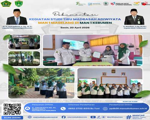 KEBUMEN – Sebagai salah satu Madrasah percontohan di Jawa Tengah dalam bidang pelestarian lingkungan, MAN 1 Kebumen menerima kunjungan studi tiru dari tim Adiwiyata MAN 1 Magelang pada Senin (20/04)....
